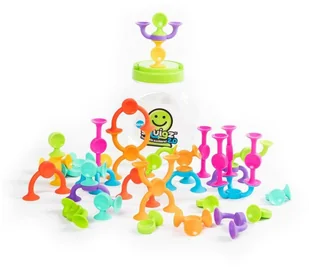 Przyssawki Squigz 2. 0 - 36 Klocków. Nowe Przyssawki to zupełnie nowy wymiar przysysania. Squigz 2. 0 są tak samo giętkie, łapią się wszystkiego i zasysają w zabawie, dodatkowo można je łączyć nie tylko z końcami klocków, ale także z ich środkami. Dzięki nowym wykręconym kształtom, dzieci będą tworzyć jeszcze bardziej fantazyjne konstrukcje.