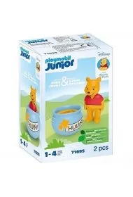 Winnie's stand-up honey pot (Nowo utworzony przedmiot - opis do naśladowania, również na życzenie) Lot towarów - kiedy zniknie, to zniknie Dzięki zabawnemu, stojącemu garnkowi miodu Winnie, umiejętności motoryczne bardzo małych dzieci są ćwiczone w zabawny sposób, a jednocześnie zachęca się je do myślenia przyczynowo-skutkowego. Po naciśnięciu garnuszek zawsze się prostuje i chwieje w przód i w tył. Wymiary: 6 x 6 x 6 cm (dł. x gł. x wys.) Zabawka wykonana w 90% z materiałów roślinnych Dzbanek na miód Junior Kubuś Puchatek