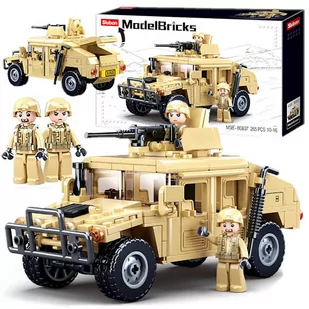 265 klocków Jeep Hummer wojskowy - pustynna burza. DWIE figurki ŻOŁNIERZY MARINES żołnierze z wyposażeniem Kolorową instrukcję obrazkową Opakowanie kartonowe idealne na prezent. JEEP charakteryzuje się wszechstronnym zastosowaniem, sprawdzając się w warunkach bojowych i nadając się do transportu lotniczego.