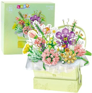 Klocki Konstrukcyjne Kompozycja W Pudełku Box Kwiatowy Zielony LED 750el.