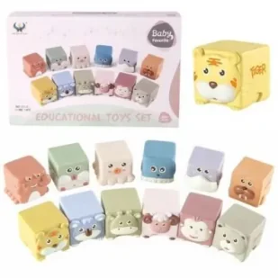 ZESTAW KLOCKÓW SENSORYCZNYCH ZWIERZĄTKA Kolorowy zestaw klocków sensorycznych to doskonała zabawka dla najmłodszych, wspierająca rozwój poznawczy i motoryczny dziecka już od 6. miesiąca życia. W zestawie znajduje się 12 klocków o różnych fakturach, kształtach i kolorach, które stymulują zmysły maluszka i zachęcają do eksplorowania świata poprzez dotyk. Każdy klocek przedstawia inne zwierzątko, co czyni zabawę jeszcze bardziej atrakcyjną. Dziecko uczy się rozpoznawać i nazywać zwierzęta, rozwijając przy tym koordynację wzrokowo-ruchową.