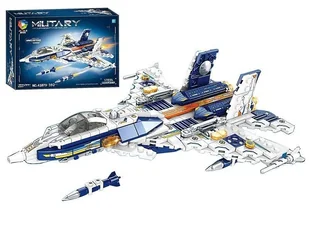 Klocki - Samolot myśliwski. Klocki. Zestaw klocków - model samolotu myśliwskiego, z podstawką, 24,8x20,8x6,2cm; 36x25x8cm, Box