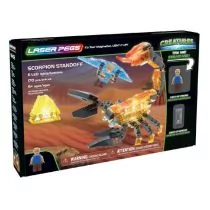 Świecące klocki z diodami LED, Laser Pegs, Scorpion Standoff 18402 Seria CREATURES to przygoda, ryzyko i podróże w niezbadane zakątki naszej planety w poszukiwaniu tejemniczych bestii nieznanych nauce. Spotkanie z monstrualnym skorpionem pod piramidami może okazać się śmiertelne dla naszego bohatera. Czy zdoła ocalić swoje życie $122 Sprawdź ! nowy moduł ,,TRY ME" umożliwia wypróbowanie zabawki bez otwierania pudełka, zawiera 170 elementów i 6 klocków z diodami LED, zawiera minifigurkę z podświetlonym kombinezonem i akcesoria, zabawka wykonana z certyfikowanego i trwałego plastiku o wysokiej jakości, stałe źródła światła (diody LED wystarczą na 100 000 godzin, czyli 11 lat zabawy), w zestawie znajdują się baterie, szczegółowa instrukcja w zestawie, a także na stronie internetowej producenta. Klocki LASER PEGS są wykonane z przejrzystego plastiku w różnych kolorach. Część elementów każdego zestawu posiada wbudowane świecące różnokolorowe diody LED (zasilanie z wbudowanych baterii lub dołączonej bazy - w zależności od modelu), co umożliwia tworzenie barwnych i fantazyjnych konstrukcji.