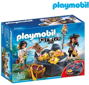 Wyspa skarbów ze skrytką. Znajdź tajemny przycisk a ziemia osunie się i pokaże wszystkie schowane skarby. Ale uważaj! Pilnują jej skorpiony. Wszystko z pewnością uda się przy pomocy dwóch dołączonych piratów, mają oni szable, pistolet i pochodnie. To z pewnością odstraszy innych poszukiwaczy!