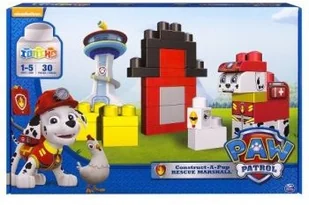 Spin Master Psi Patrol Klocki Marshall andamp; Chickoletta Zestaw zawiera 30 klocków. Zbuduj Marschalla, aby ocalić Chickolettę na farmie. Na tyle opakowania znajduje się kolorowanka.