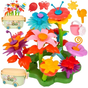 Aż 102 kolorowe elementy do budowy kwiatów i ogrodu Rozwija kreatywność, wyobraźnię i zdolności manualne Bezpieczna zabawka dla dzieci od 3 roku życia Wygodny wózek na kółkach – idealny do przechowywania i transportu Dołączona mini konewka do podlewania roślinek Możliwość tworzenia własnych kompozycji ogrodowych Łatwy montaż – elementy łatwo się łączą i rozdzielają