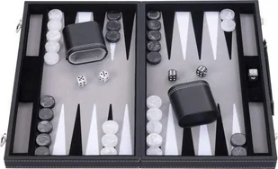 Backgammon 15'' Quint. Gra. Backgammon 15 cali Backgammon jest intarsjowany i dostępny w kolorach czarnym, białym i szarym Gra znajduje się w czarnym etui z Pu z uchwytem i jest dostarczana w kolorowym pudełku Wymiary: 38 x 23 x 5,5 cm