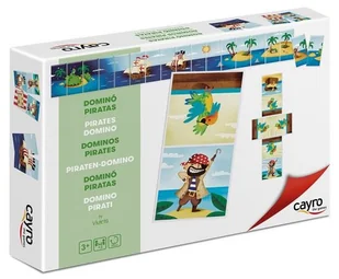 Domino obrazkowe - Pirat (878) Cayro. Gra. W trakcie gry, każdy jej uczestnik stara się dołożyć jeden ze swoich elementów do układu leżącego na stole Elementy dokłada się dopasowując ze sobą ich obrazki, Zwycięzcą zostanie ten, kto pierwszy pozbędzie się swojej puli elementów Uwaga: na. . .