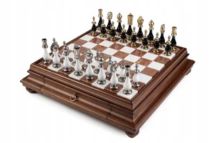 ITALIAN CHESS WOOD WHITE/BLACK+CHESS BOARD MARBLE/WOOD 46 WITH DRAWER Italfama Szachy światowej sławy włoskiej marki Italfama. Szachownica wykonana z drewna ...