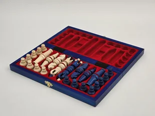 NIEBIESKIE Szachy drewniane Królewskie 31x31 we wkładce PRODUCENT