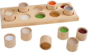 Small Foot Memory dotykowe to wykonana z wysokiej jakości drewna zabawka edukacyjna. Materiał, z którego została zrobiona, zapewni ci długą trwałość oraz wytrzymałość. Dzięki temu jest to produkt, który świetnie się sprawdzi zarówno w gabinetach terapeutycznych oraz jako wyposażenie przedszkola. W zestawie znajduje się 10 elementów, które pokryte zostały przeróżnymi fakturami. Z pomocą naszego produktu jesteś w stanie przeprowadzić zajęcia wspomagające rozwój Twoich podopiecznych. Zabawka sensoryczna pomoże rozwinąć złożone funkcje poznawcze takie jak koordynacja wzrokowo-ruchowa oraz percepcja dotykowa. Jest to świetny produkt, który podczas zabawy jednocześnie wycisza Twoje dziecko.