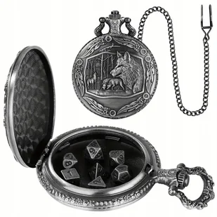 Zegarek Kieszonkowy Pudełko Zestaw Kostek 7 Kości RPG WILK STADO WATAHA LAS