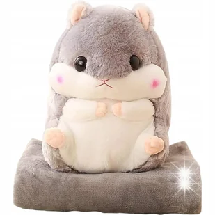 Specyfikacja produktu Wysokość maskotki: 35 cm Materiał: Miękki plusz Elementy zestawu: Maskotka chomik + koc Kolor maskotki: Szary z białymi detalami Kolor koca: