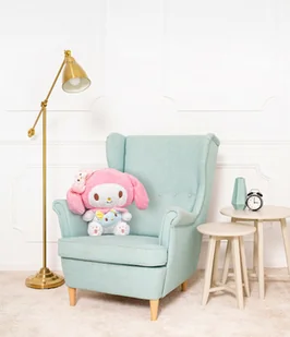 ❣️HELLO KITTY MY MELODY❣️ ❣️Z niebieskim kotkiem jako torebka ❣️ ✳️Cechy produktu: Główka i uszy: My Melody ma dużą, okrągłą główkę pokrytą mięciutkim pluszem w pastelowo–różowym kolorze. Jej długie, opadające uszka są miękkie, sprężyste i zakończone delikatnym obszyciem. Na lewym uchu znajduje się urocza, materiałowa gumka w kolorze pudrowego różu z doszytą miniaturową figurką białego króliczka – subtelny detal, który nadaje całości wyjątkowego charakteru.
