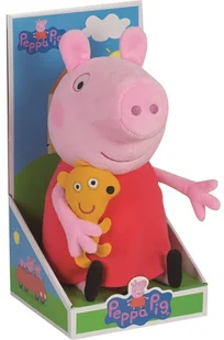 Peppa Pig in red dress with her cute teddy bear under her arm. Measures 25 cm.