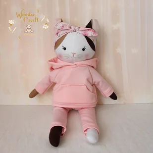 Przeurocza przytulanka, Kicia trikolorka uszyta ręcznie z najwyższą starannością, ubrana w śliczny, mięciutki dresik w kolorze różowym i różową opaskę w kwiatuszki. Wykonana ze 100% bawełny, wypełniona an ...