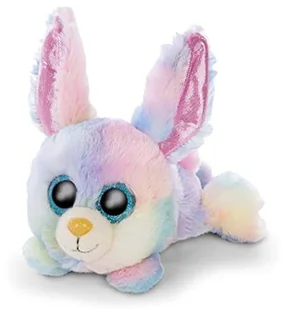Wykonany jest z pluszu i poliestru. Wypełnienie jest również wykonane z poliestru. Odpowiedni dla dzieci w wieku od 0 lat. Królik Rainbow Candy naprawdę przyciąga wzrok swoim kolorowym futerkiem i błyszczącymi uszami. Puszyste futerko i duże niebieskie błyszczące oczy są po prostu nieodparcie urocze! Zabawka jest wykonana z wysokiej jakości pluszu i ma gwiazdę NICI na nodze.