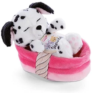 Pluszowy pies rasy Dalmatyńczyk z kolekcji Śpiące zwierzęta firmy NICI to idealny pomysł na prezent dla wszystkich miłośników zwierząt domowych. Swoim puszystym, czarno-białym futerkiem, słodkimi, śpiącymi oczkami oraz precyzyjnie wyszytymi detalami pyszczka zachwyca każdego, zyskując sympatię zarówno młodszych, jak i starszych dzieci. Oddzielny, różowy koszyczek, w którym umieszczono śpiącego pieska, również został wykonany z przyjemnego w dotyku, miękkiego pluszu. Zarówno pieskiem, jak i koszyczkiem można bawić się osobno. Przyniesie dzieciom radość w szkole, podróży lub podczas codziennych aktywności.