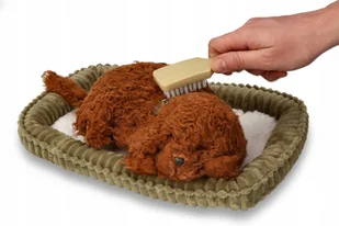 ✔️ Oddychający moduł: zasilanie bateriami (działają ok. 2–3 miesiące; wymienne) ✔️ Materiał: ręcznie robione, syntetyczne futerko ✔️ Zestaw: szczeniaczek z obrożą, legowisko, szczotka, karta adopcyjna, pudełko–transporter ✔️ Wymiary legowiska: 37 × 27 × 4 cm ✔️ Wymiary szczeniaczka: