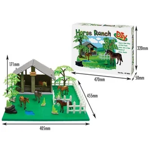 Zestaw do samodzielnego składania, zawiera elementy piankowe oraz plastikowe figurki zwierzątek. Po złożeniu powstaje makieta rancza. Podstawa ma wymiary 40x...