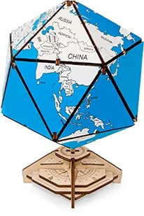 EWA Eco-Wood-Art EWA Eco-Wood-Art - Drewniane puzzle 3D dla młodzieży i dorosłych - globus Icosahedral (niebieski) - zestaw do samodzielnego montażu, bez konieczności użycia kleju - 97 sztuk ICOSAHEDRAL GLOBE (BLUE)