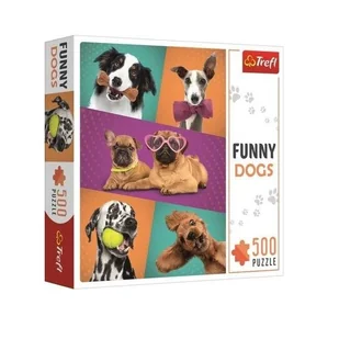 Puzzle z zabawnymi psami, zawierające 500 elementów. Po złożeniu warto umieścić je w ramie, by stały się oryginalną ozdobą w Twoim domu. Wysoka jakość wykonania, intensywne kolory oraz bezpieczeństwo użytkowania wynikają z wykorzystania kalandrowanego papieru, który odbija światło i jest pokryty naturalnymi farbami do żywności. Produkcja miała miejsce w Polsce, z użyciem materiałów przyjaznych dla środowiska. Trefl odpowiada na potrzeby miłośników puzzli, proponując serię z pięknymi ilustracjami, które są przyjemne do układania w każdym wieku.