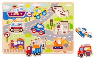 - - Puzzle pinezkowe marki Tooky Toy o motywie Transportu to świetna zabawka dla dzieci w wieku od 18 miesiąca życia