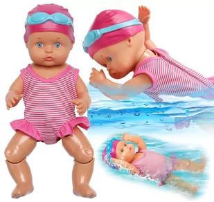 Potrafi pływać na plecach i na brzuszku. Warto abyś podtrzymywała ją w tej trudnej nauce pływania. Lalka ubrana jest w różowy strój kąpielowy, a na główce ma czepek i okulary do pływania.