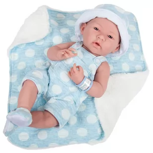 JC TOYS La Newborn lalka dla noworodków, 38 cm, z miękkiego winylu, w zestawie odzież, pluszowa zabawka i 4 akcesoria, niebieska, zaprojektowana w Hiszpanii przez Berenguer, 2 lata