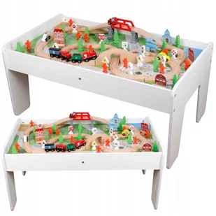 KOLEJKA DREWNIANA POCIĄG Z WAGONAMI + MIASTO I STÓŁ DO ZABAWY 90 elementów