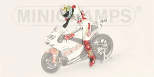 Figurine Sitting Valentino Rossi MotoGP Valencia 2005 pochodzi z kolekcji firmy Minichamps. Figurka wykonana w skali 1:12.