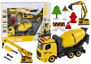 Co sprawia, że nasz zestaw wyróżnia się spośród innych? To przede wszystkim jego wymienne elementy, które pozwalają na transformację jednego pojazdu w trzy różne maszyny budowlane. Ciężarówka może stać się betoniarką, koparką lub dźwigiem z ruchomym hakiem, dostosowując się do różnorodnych potrzeb na placu budowy. Ta wszechstronność sprawia, że dzieci mają nieograniczone możliwości kreatywnej zabawy i eksperymentowania.