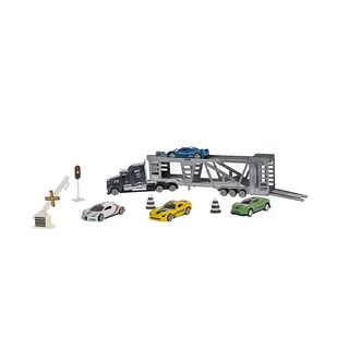 Transporter pojazdów sportowych z akcesorami ELEFUN spodoba się każdemu dziecku lubiącemu bawić się samochodami, innymi pojazdami i odtwarzać różne sytuacje na drodze. Oprócz lawety i samochodów w zestawie znajdują się także elementy oznaczeń drogowych. Zestaw zawiera lawetę, 4 samochody sportowe i elementy oznaczeń drogowych.