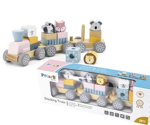 Viga PolarB Drewniana Kolejka z Wagonikami i Zwierzątkami Do Układania Mont