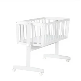 Kołyska posiada funkcję bujania ułatwiającą zasypianie. Dzięki przyciskowi blokującemu można ją w każdej chwili bezpiecznie zablokować. Dzięki czterem kółkom z hamulcami można łatwo przesuwać kołyskę w dowolne miejsce. Łóżeczko zawiera polarowy materac o wymiarach 90 x 40 cm, który zapewnia wygodną i przytulną przestrzeń do spania w pierwszych miesiącach życia dziecka. Łóżeczko może być używane do momentu, gdy dziecko zacznie się podciągać lub siadać, około 6-8 miesięcy.