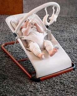 KUNU Leżaczek bujak dla niemowląt składany z zawieszkami i pokrowcem