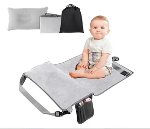 Łóżeczko / przedłużka fotela dla dziecka do samolotu ✈️ Chcesz, aby Twoje dziecko podróżowało wygodnie i spokojnie nawet podczas długiego lotu? Nasz podnóżek i łóżeczko samolotowe dla dzieci to idealne rozwiązanie! Najważniejsze zalety: Miękki, aksamitny materiał – delikatny, przyjemny w dotyku, oddychający. Większy komfort w podróży – dziecko może wyprostować nogi i odpocząć. Dodatkowe kieszonki – na przekąski, zabawki i drobiazgi. Łatwy montaż – wystarczy zaczepić o stolik i fotel, poduszka jest nadmuchiwana pompką.