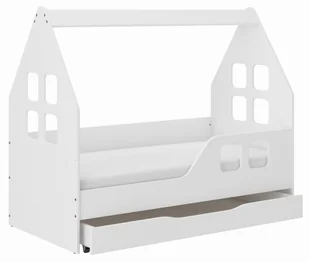 Zestaw zawiera: Łóżko w kształcie domku z oknami. Materac piankowy marki MATSEN. Certyfikowany i bezpieczny dla każdego użytkownika. Pokrowiec z zamkiem błyskawicznym na materac, umożliwiający łatwe utrzymanie czystości.