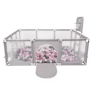 Selonis Boisko BO-100X z piłeczkami 6cm szary: biały-szary-pudrowy róż 180x122x62/200piłek Zabawka kojec