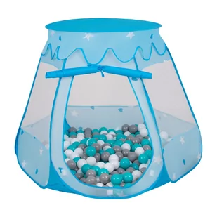 Selonis namiot zamek nz-100x z piłeczkami 6cm niebieski: biały-szary-turkus 105x90cm/100piłek zabawka namiot dla dzieci