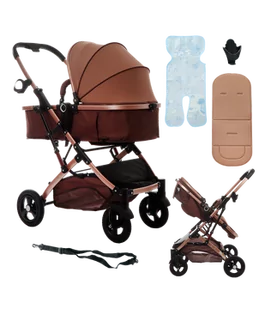 Lekki, wielofunkcyjny wózek dziecięcy Koetsi 3w1 w kolorze brązowym Aluminiowy wózek 3w1 jest idealnym rozwiązaniem dla rodziców poszukujących wszechstronnego i funkcjonalnego produktu. Może być używany jako: ⚜️gondolowy , ⚜️spacerowy z odchylaną rączką zabezpieczającą ⚜️nosidełko dla dzieci , co czyni go wyjątkowo uniwersalnym. Wózek dziecięcy Koetsi od Webben wyróżnia się szeregiem innowacyjnych funkcji, które zapewniają wygodę i bezpieczeństwo Twojego dziecka: ⚜️sprężyny amortyzujące koła sprawiają, że wózek świetnie radzi sobie na różnych nawierzchniach, zapewniając płynną i komfortową jazdę, ⚜️możliwość ustawienia w pozycji leżącej gwarantuje dziecku wygodę podczas snu i odpoczynku, ⚜️płynnie rulowana część dolna tworzy przyjemną podporę pod nóżki malucha.