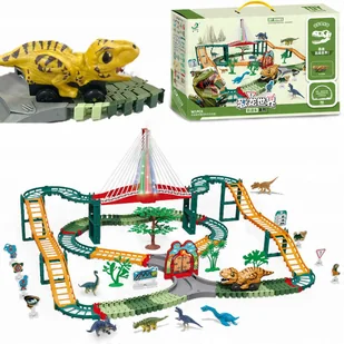 2 x DUŻY TOR WYŚCIGOWY DINO PARK DINOZAUR KOLEJKA ŚWIATŁO DŹWIĘK 167 EL. MA