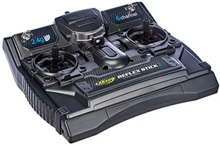 Reflex Stick II od Carson-Model Sport to niedrogi, nowoczesny i technicznie wysokiej jakości 6-kanałowy system zdalnego sterowania do uniwersalnego zastosowania w wielu pojazdach RC i statkach. 6 kanałami można sterować niezależnie za pomocą 2 joysticków i 2 przełączników (1x przycisk/1x przełącznik). 6-kanałowy system REFLEX STICK jest w pełni kompatybilny ze wszystkimi jednostkami MFC i DMD firmy TAMIYA, ponieważ trym jest kontrolowany za pomocą suwaka.