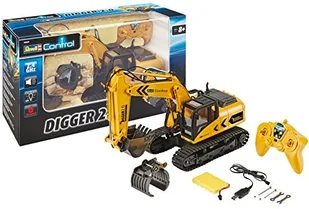 GHz Koparka RC Revell 24924 z pilotem zdalnego sterowania 6-CH 2,4 GHz, nadaje się do użytku na zewnątrz, metalowa łopata i chwytak do drzew, łatwy do trzymania napęd łańcuchowy, wierny oryginałowi, indywidualnie sterowane części koparki 2. 0, kolorowe. Zalecany wiek w latach (min.): 96 lat. Liczba obsługiwanych akumulatorów: 2. materiał: plastikCechy: