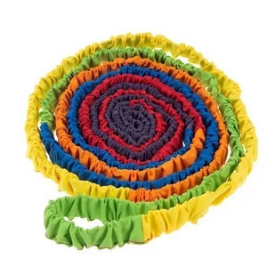 Guma sensoryczna animacyjna tęczowa AKSON Guma sensoryczna - animacyjna AKSON w kolorach tęczy podobnie jak chusta animacyjna AKSON to idealne narzędzie do zabaw w grupie. Pomaga utworzyć koło podczas zajęć. Dzieci uwielbiają zabawy z gumą sensoryczną! Polecana szczególnie wszystkim nauczycielom, opiekunom oraz animatorom jako doskonała pomoc dydaktyczna, pedagogiczna i animacyjna. Sprawdzi się zarówno przy małych, jak i większych grupach dzieci. Cechy gumy animacyjnej AKSON: