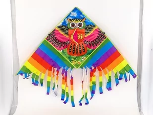 Duży latawiec z grafiką kolorowej sowy. Bardzo szybki montaż latawca. Lekki i łatwy w sterowaniu. Wykonany z wytrzymałych materiałów, posiada metalowy stelaż. Świetna rozrywka na dworze.