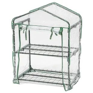 Składana szklarnia ogrodowa ma kompaktowy rozmiar i została wyposażona w stalową konstrukcję z dwoma poziomami półek, która umożliwia efektywne zagospodarowanie miejsca i zwiększenie ilości upraw. Wykonana z przezroczystej folii PCV szklarnia zapewnia roślinom ochronę przed niekorzystnymi warunkami atmosferycznymi, takimi jak deszcz, silny wiatr czy niskie temperatury, a jednocześnie umożliwia im pełny dostęp do światła słonecznego.