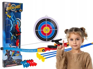 Zestaw łuk, bełty, tarcza, rzutki dla dzieci od 3-go roku życia. Łuk jest bardzo prosty w użyciu, wystarczy umieścić strzałę pomiędzy celownikiem a cięciwą, namierzyć cel i oddać strzał. W zestawie znajdują się również rzutki z przyssawką, którymi można również rzucać do celu. Tarcza z celem posiada gumową przyssawkę. Zabawa zestawem uczy precyzji i skupienia, jest to również świetny trening mięśni barków i pleców