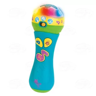 Poczuj się jak mały artysta i śpiewaj w akompaniamencie kolorowego mikrofonu, który wygrywa wesołe melodie, wydaje zabawne dźwięki oraz miga kolorowymi światełkami. Naciskając małą nutkę uruchamiamy wesołe melodie oraz migające światełka. Po naciśnięciu przycisku z łapką