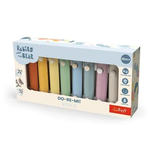 Zabawka drewniana - Do-Re-Mi Play with me TREFL. Wprowadź swojego malucha w fascynujący świat muzyki dzięki uroczym, drewnianym cymbałkom DO-RE-MI z licencjonowanej kolekcji Bobaski i Miś To pięknie wykonany instrument, który łączy świetną zabawę z nauką i wspiera rozwój dziecka już od pierwszych. . .